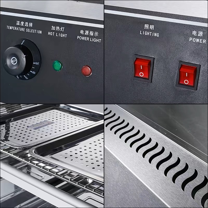 保温柜款式新颖,操作简易,直观方便,采用进口微电脑控制芯片,控温更精确,设备给耐用,独有的功率高度智能化控制系统,设备可以在不同的状态下能够智能化自动匹配不同的功率,使设备更加省电,更能延长发热单元的使用寿命,配备蒸汽发生装置,可快速补充食物流失的水分。